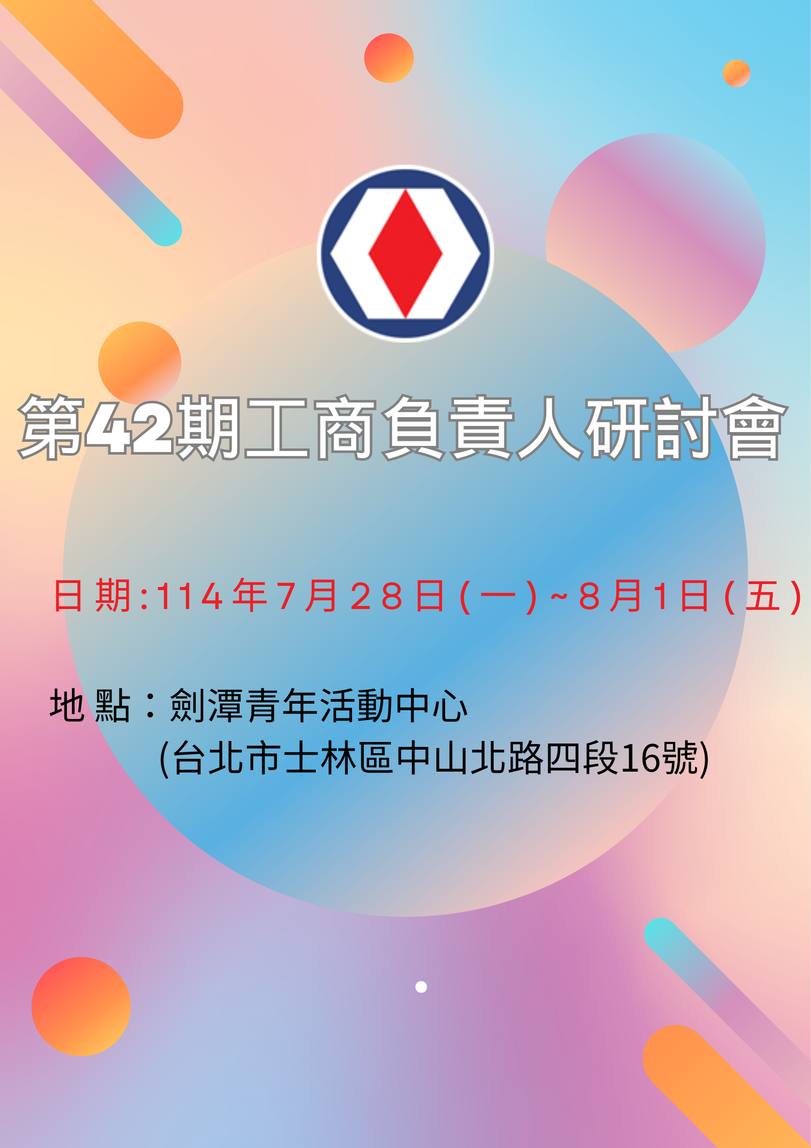 【總會重要公告】『第42期工商負責人研討會』即日起開放申請,敬請學長踴躍推薦